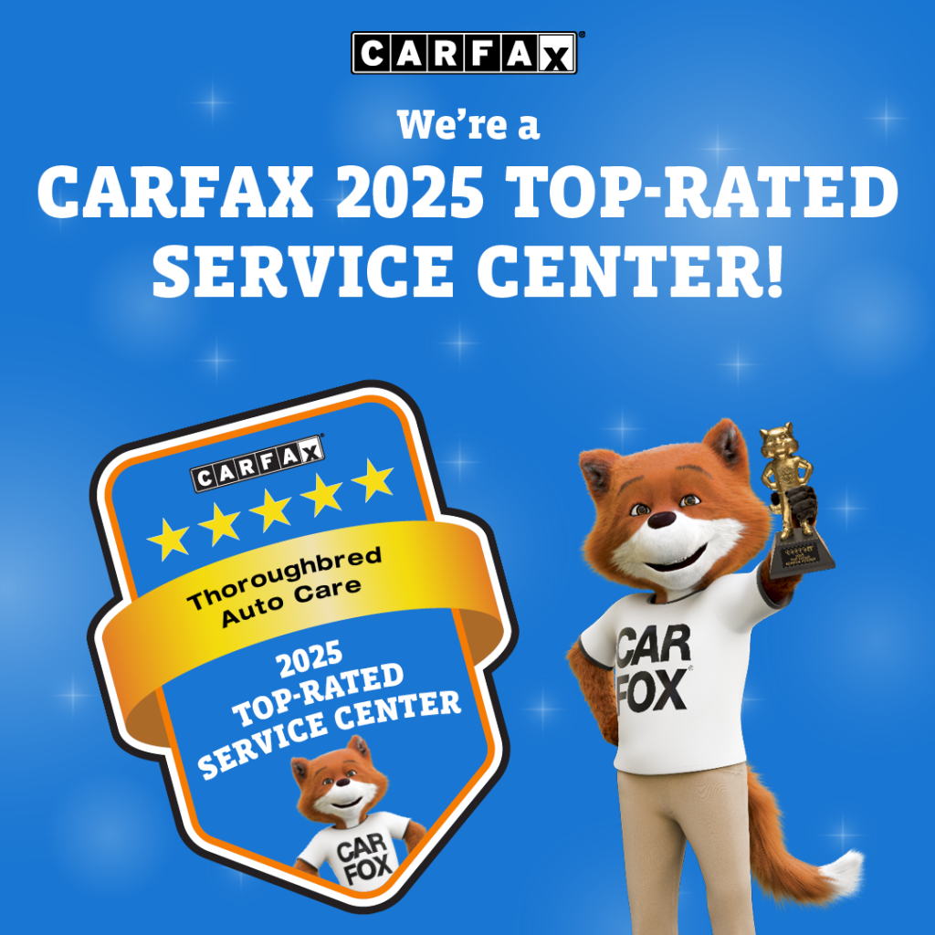 Thoroughbred Auto Care has earned the distinction of being named a 2025 CARFAX Top-Rated Service Center. This is the sixth year that CARFAX is celebrating service centers around the country for their exceptional customer service, based on verified customer reviews. The average rating for the 2025 CARFAX Top-Rated Service Centers was an impressive 4.8 out of 5 stars.